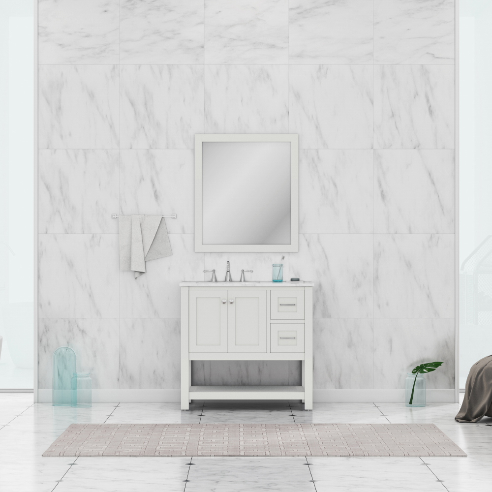 Alya Bath Wilmington 36 inch bathroom vanity cabinet,op is built with solid wood construction with huge storage space.